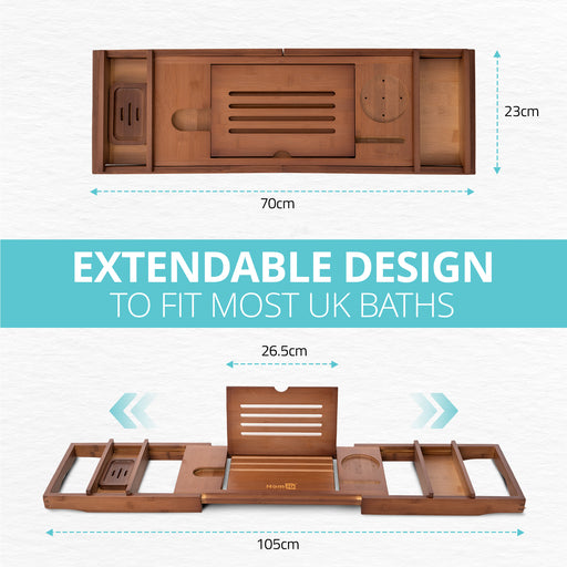 Elevate your bath time with the Homiu Bamboo Bath Tray, designed to turn your soak into a spa-like experience. This extendable bath caddy provides ...