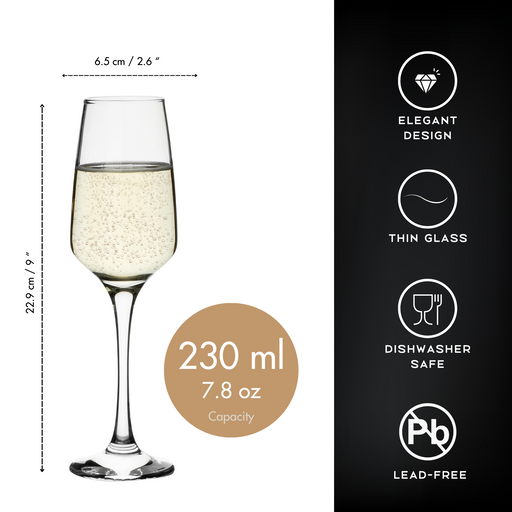 Raise a toast in style with the Homiu Florence Collection Crystal Champagne Flutes Set. This elegant set includes six 230 ML flutes, each crafted f...