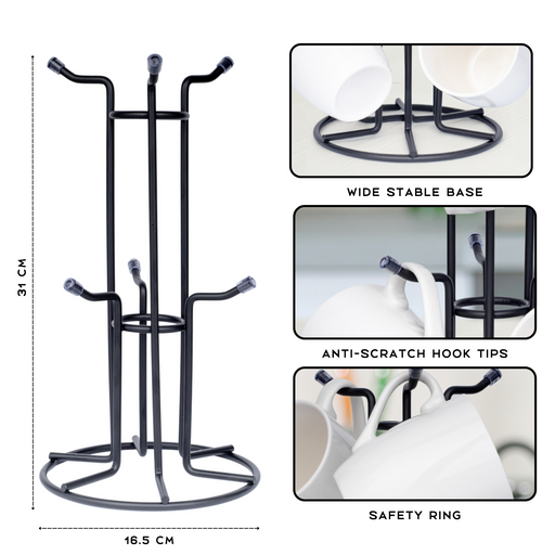 Homiu Mug Tree Holder Black – Chrome Stand for 6 Mugs Upgrade your kitchen or coffee station with the Homiu Mug Tree Holder in black. Designed to c...
