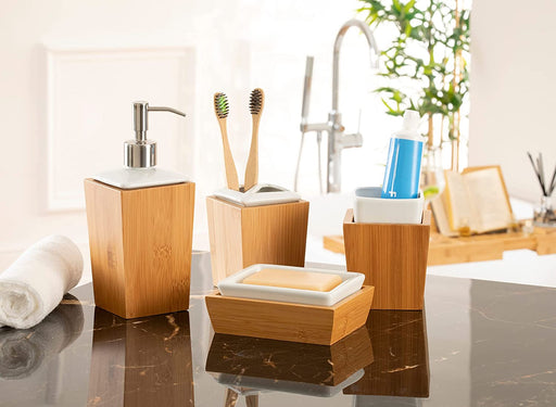 Original price £69.99Original price £69.99 - Original price £69.99Original price £69.99Current price £31.99£31.99 - £31.99Current price £31.99| /Homiu Bath Set 4 Piece Bamboo and Porcelain, Soap Dish, Toothbrush Holder, Tumbler, Liquid Soap/ Lotion DispenserHomiuColour Brown Brand Homiu Number of pieces 4 About this item Our Homiu bamboo and porcelain bath set with lotion/ hand soap bottle... View full detailsOriginal price £69.99Original price £69.99 - Original price £69.99Original price £69.99Current price £31.99£31.99 - £31.99Current price £31.99| /Save 54% Save %